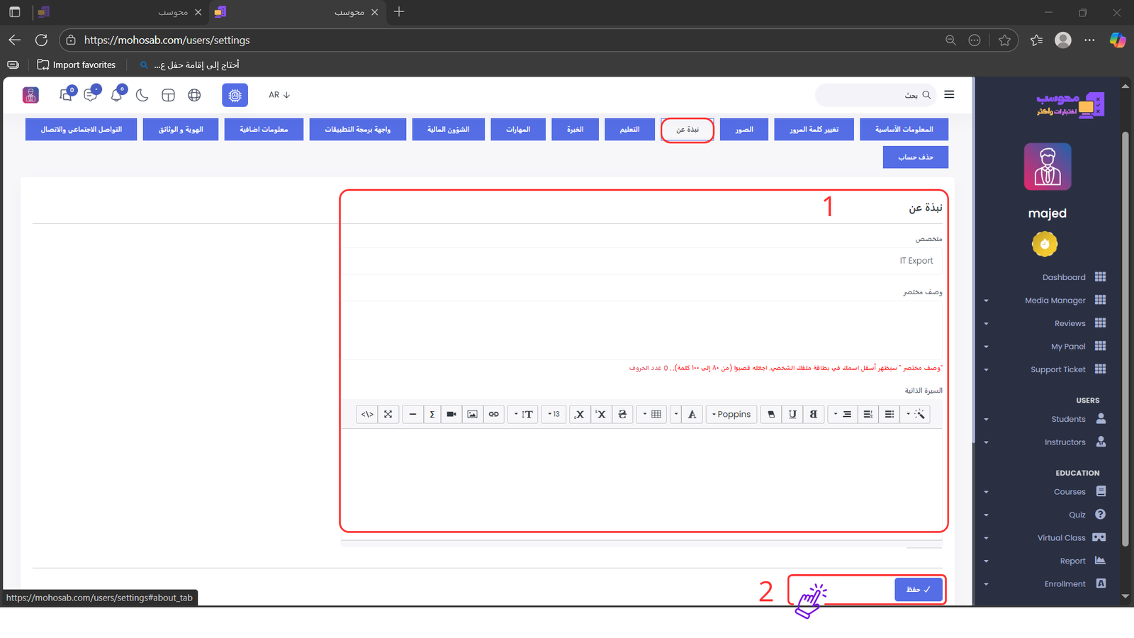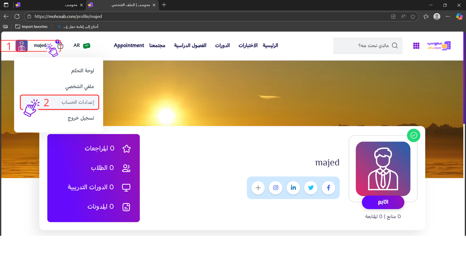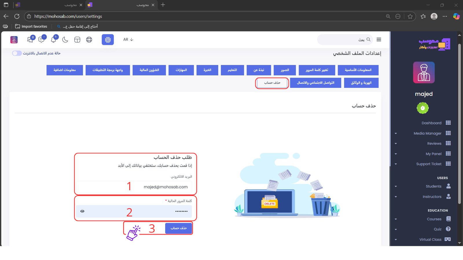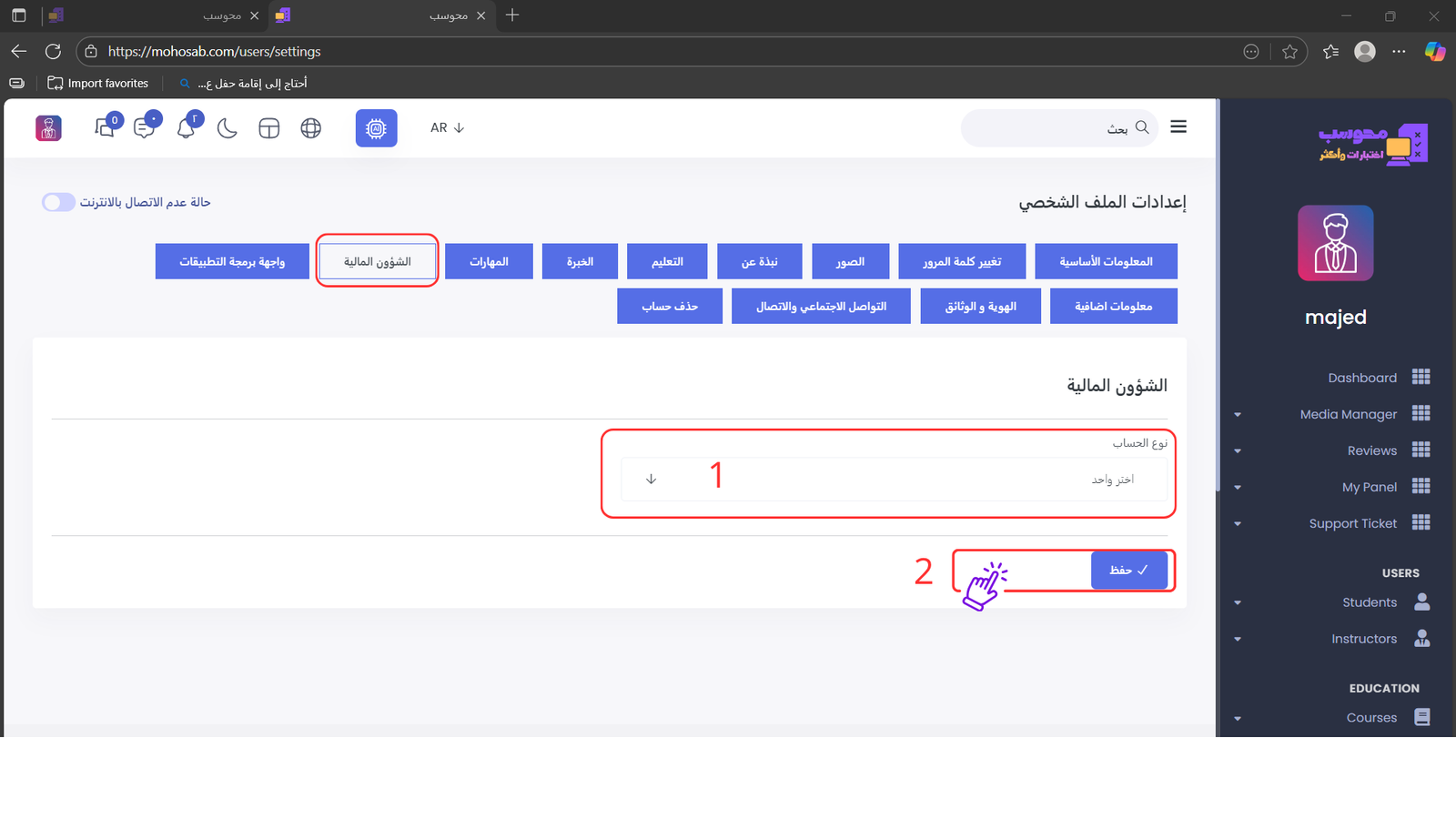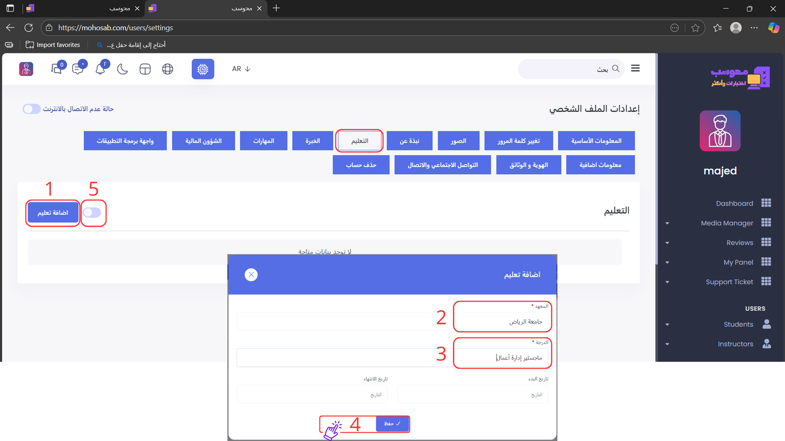 ثانياً: بعد إتمام التسجيل، ستقوم إدارة محوسب بمراجعة بياناتك والتحقق من حسابك لاعتماده كمدرب في المنصة.